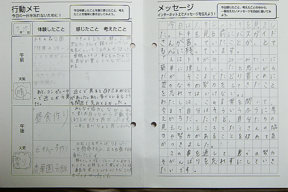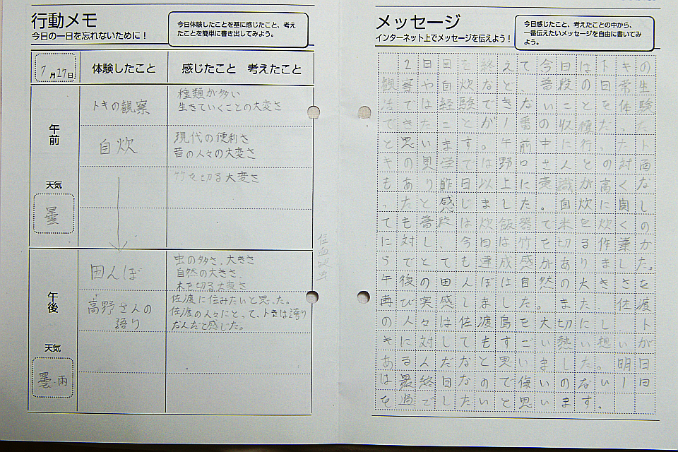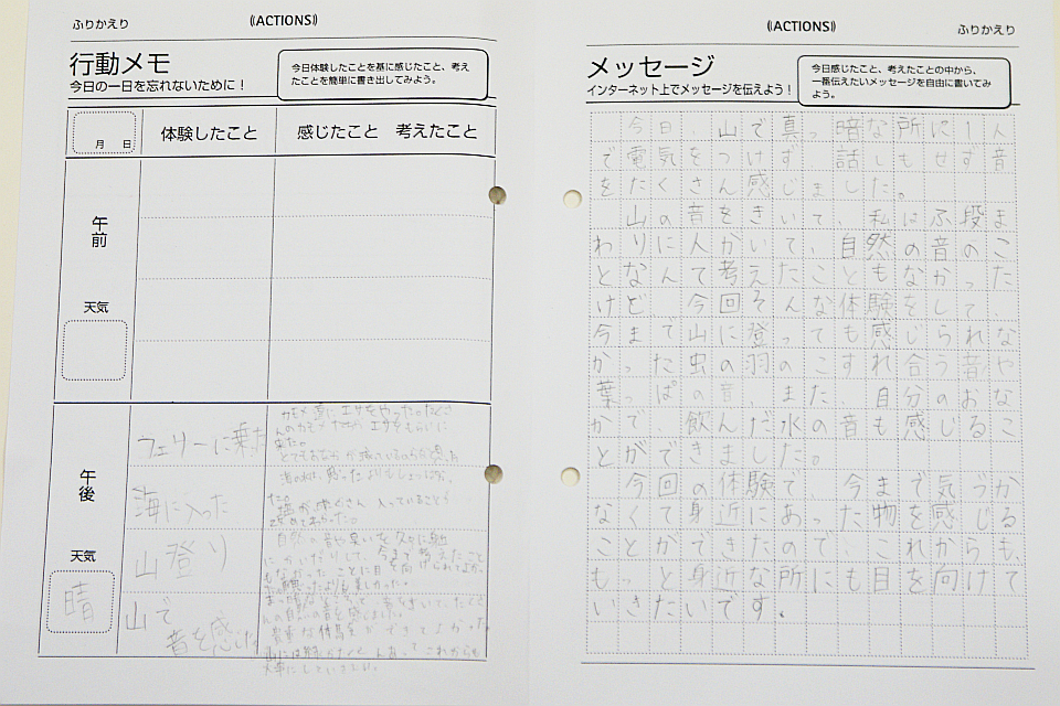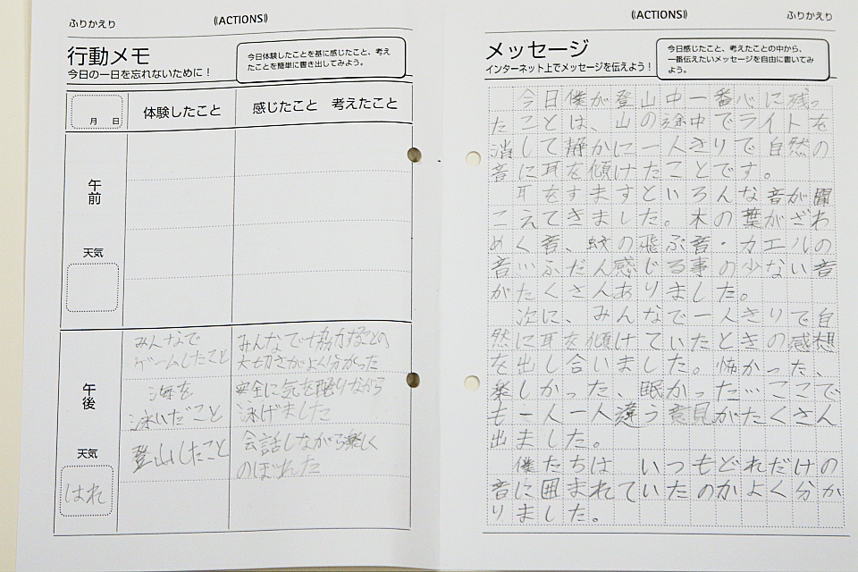 さっきは、みんなで楽しく登山してきた同じ登山道なのですが、暗闇でひとりだと「恐かったり、心細かったり、不安」そして、「自然の息づかい」を感じてくれたようです。